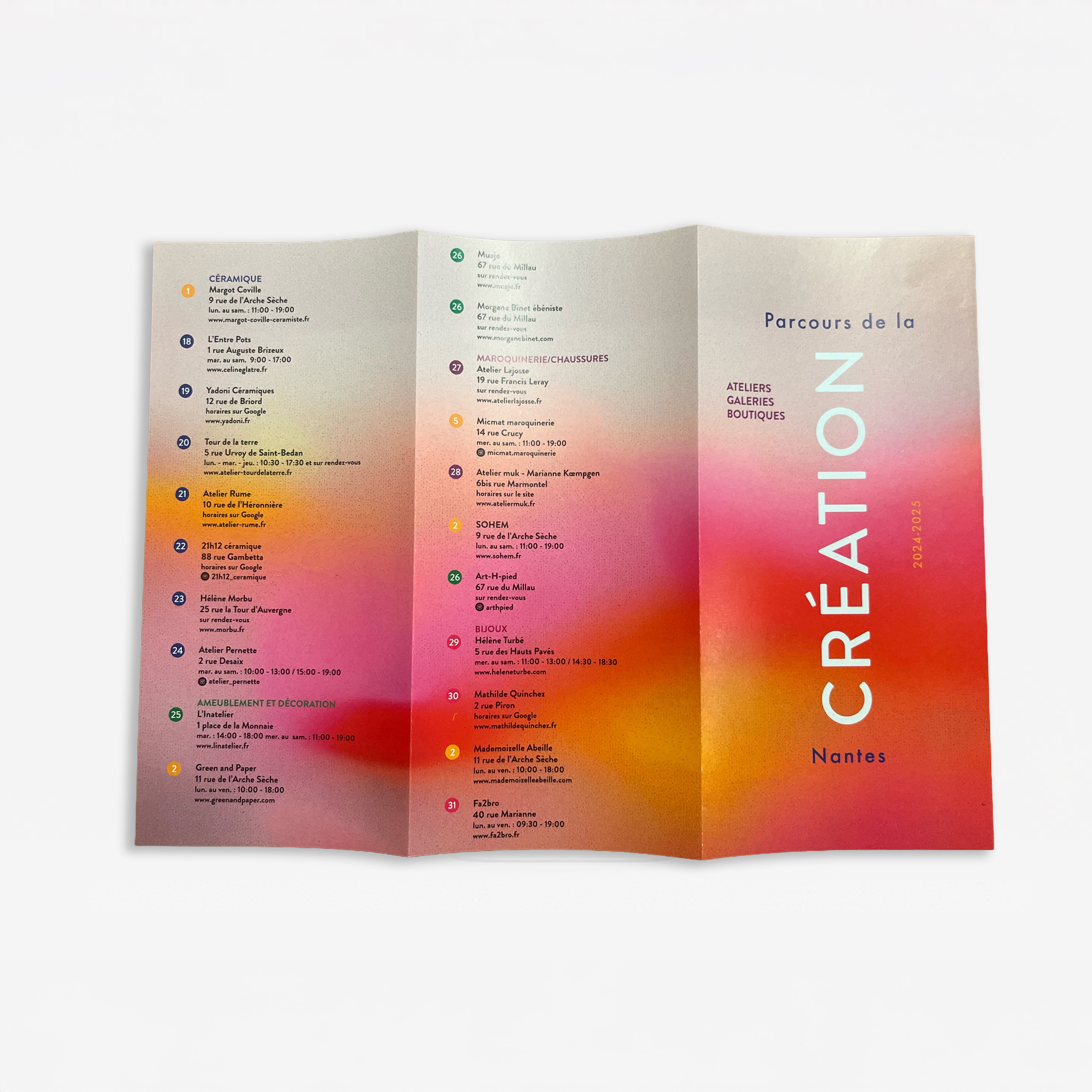 Création d’un dépliant avec une carte pour détailler les ateliers, les galeries et les boutiques de créateurs.