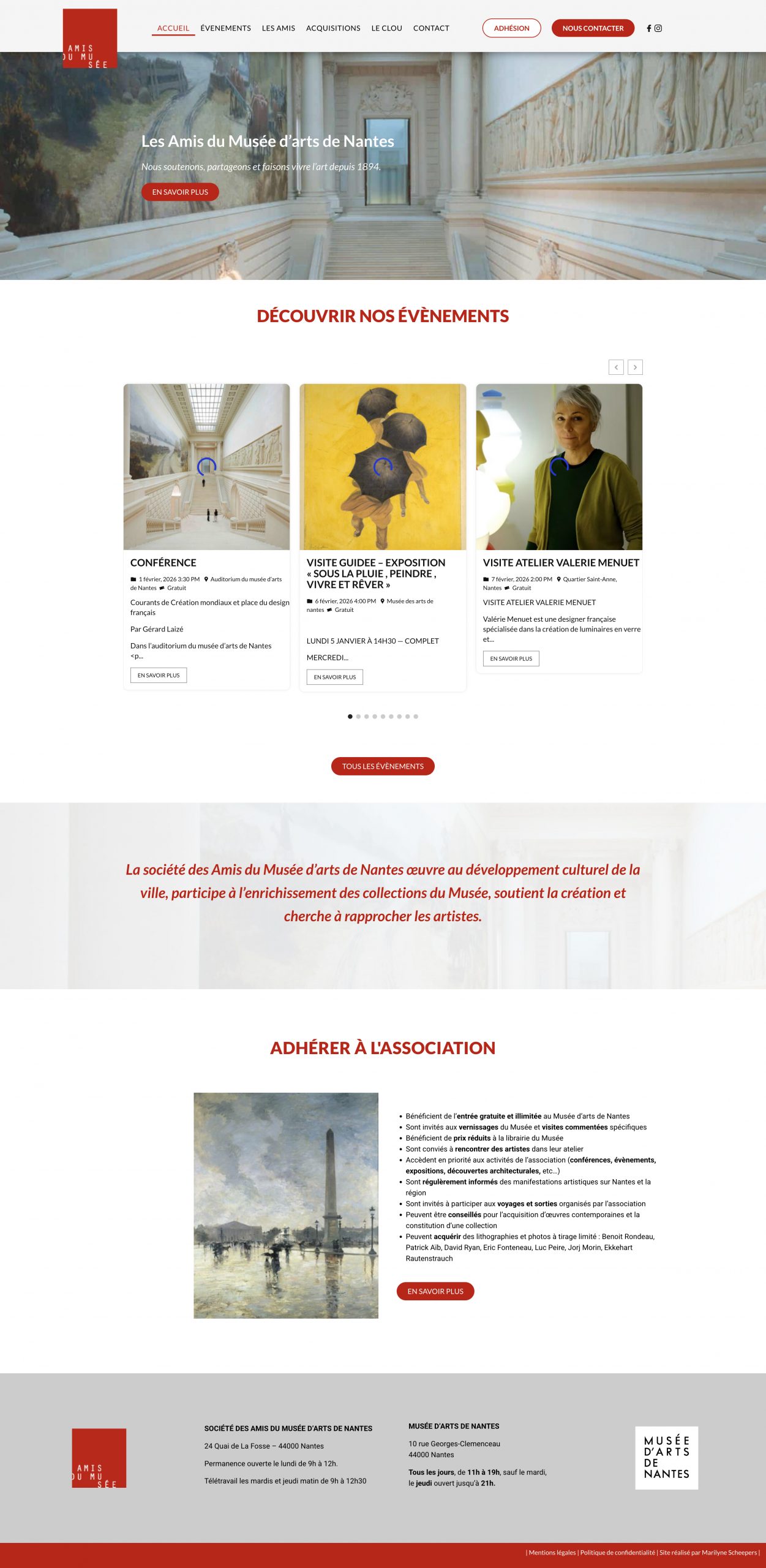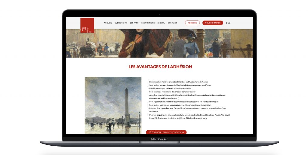 L’association a besoin d’un nouveau site pour montrer les activités de l’association. Le nouveau site propose des évènements, une adhésion annuelle pour profiter des expositions.